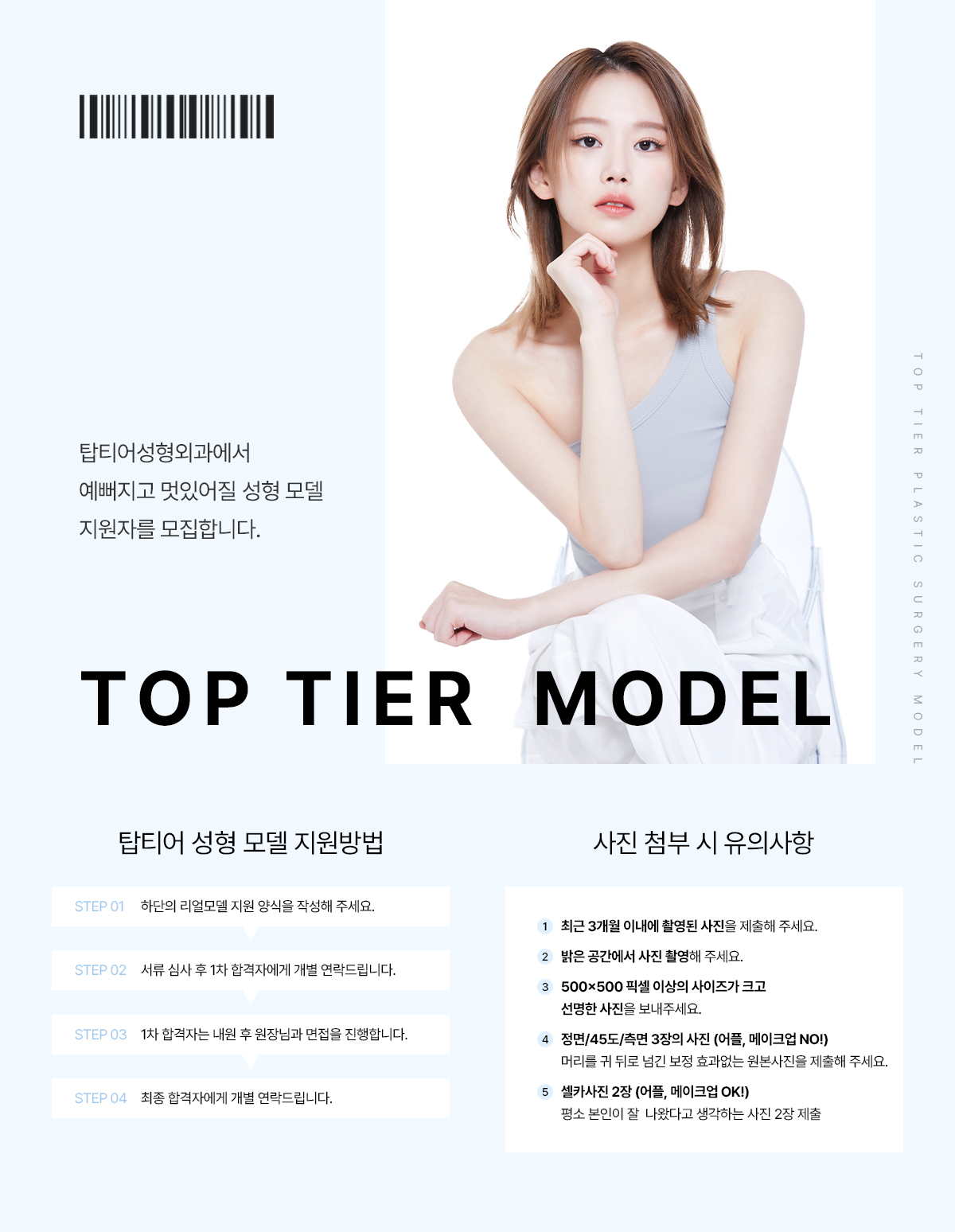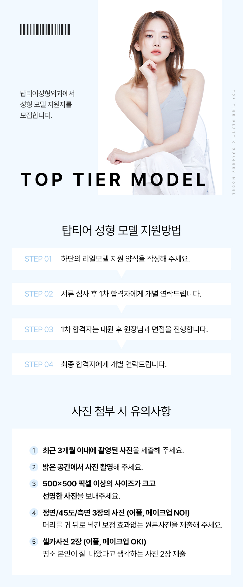 디테일한 차이로 완성되는 자연스러운 아름다움, 탑티어성형외과와 함께할 모델을 모집합니다.